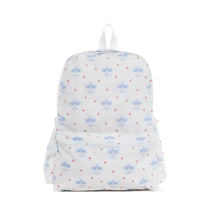 It features the iconic two-way zip main compartment—spacious enough to hold folders, lunch bags, and more—along with a full front zip pocket for additional storage.