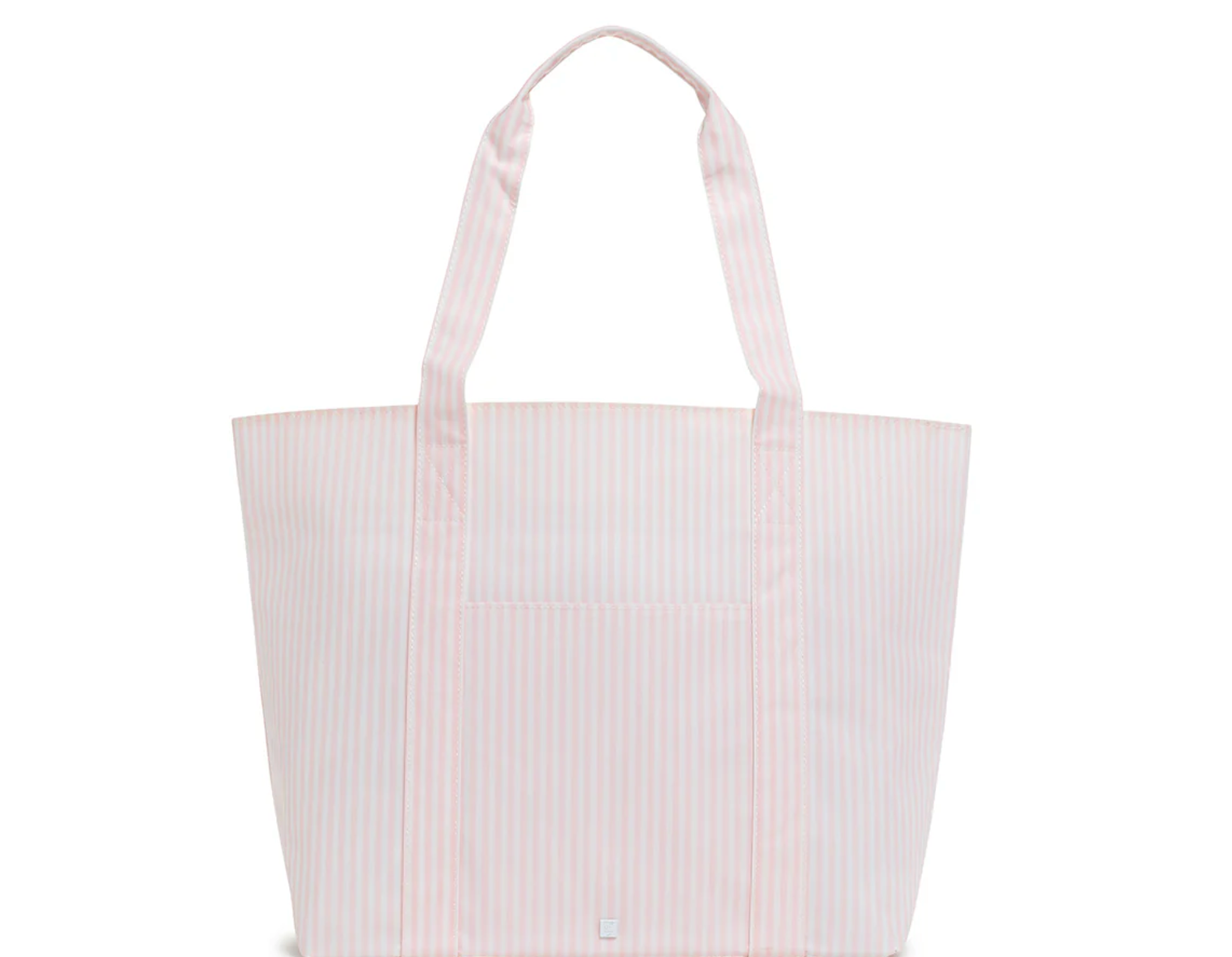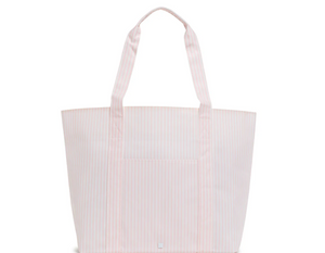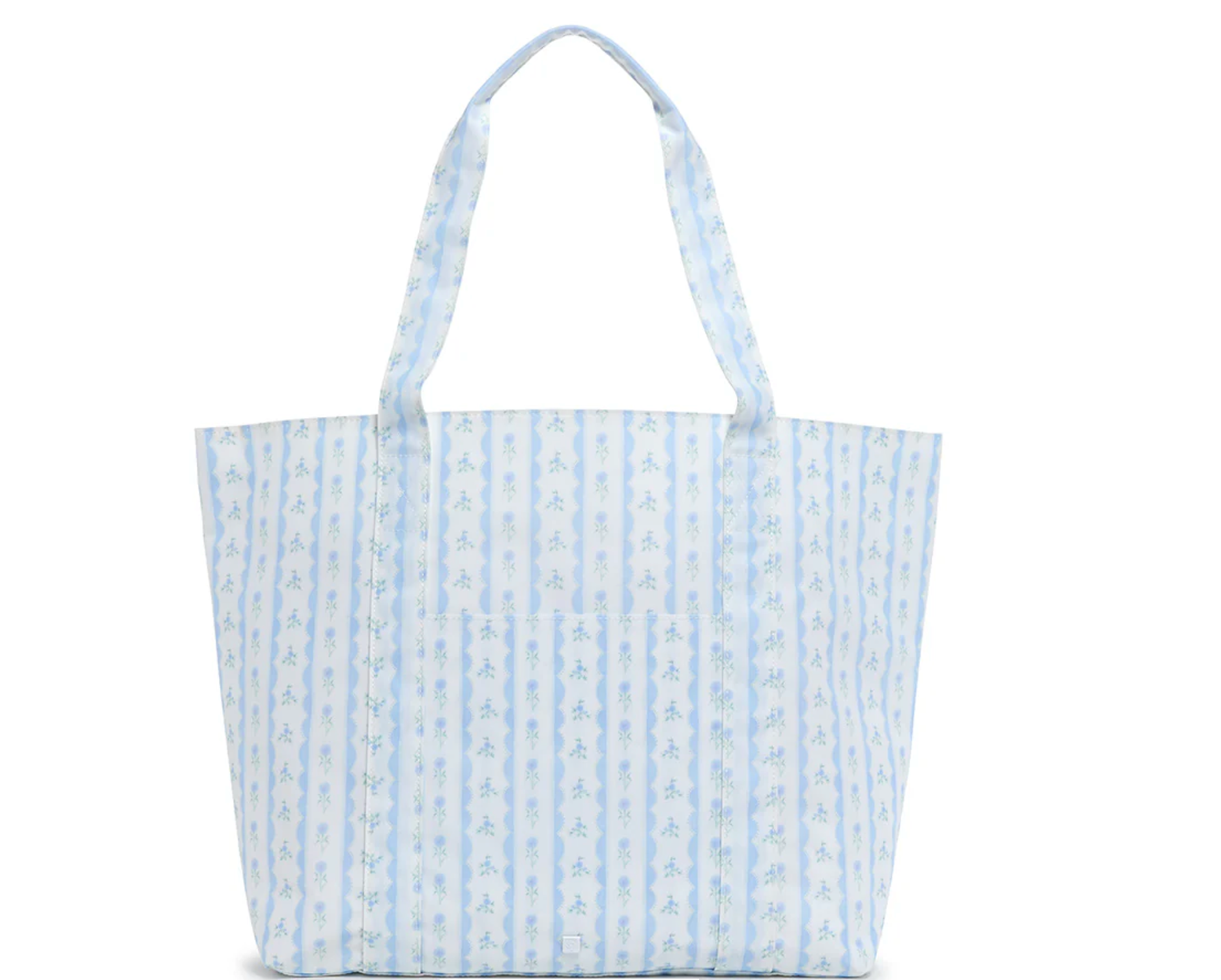 This do-it-all lightweight tote works year-round for beach days, errands, or everyday use. Underneath the strap is satin webbing to help prevent slipping. Inside you’ll find a full slip pocket and zip pocket; outside includes a front pocket and trolley passthrough.