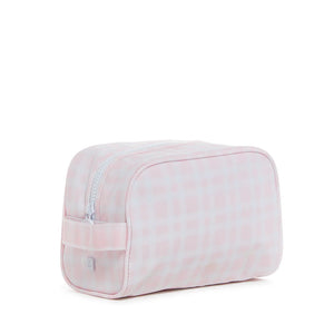 This soft sided bag with a carry handle is a mid size toiletry bag for toiletries, make-up, hair care – anything to have within arm’s reach while getting ready for your day. Comes with a slip interior pocket and is wipeable and machine washable.